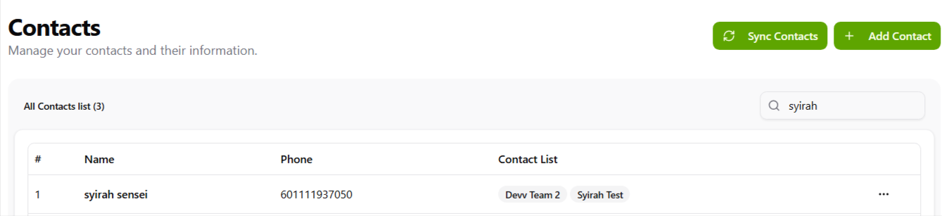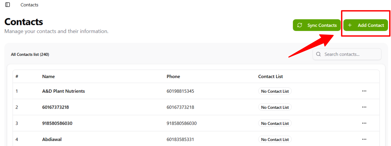 - Click to refresh or import contacts from connected sources (e.g., phone contacts, CRM, WhatsApp groups, or external files).