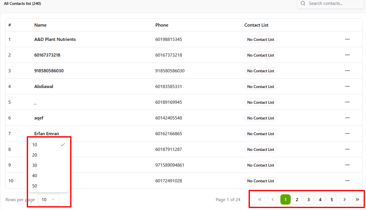 - You can expand the contact list to show more rows, up to a maximum of 50 rows.