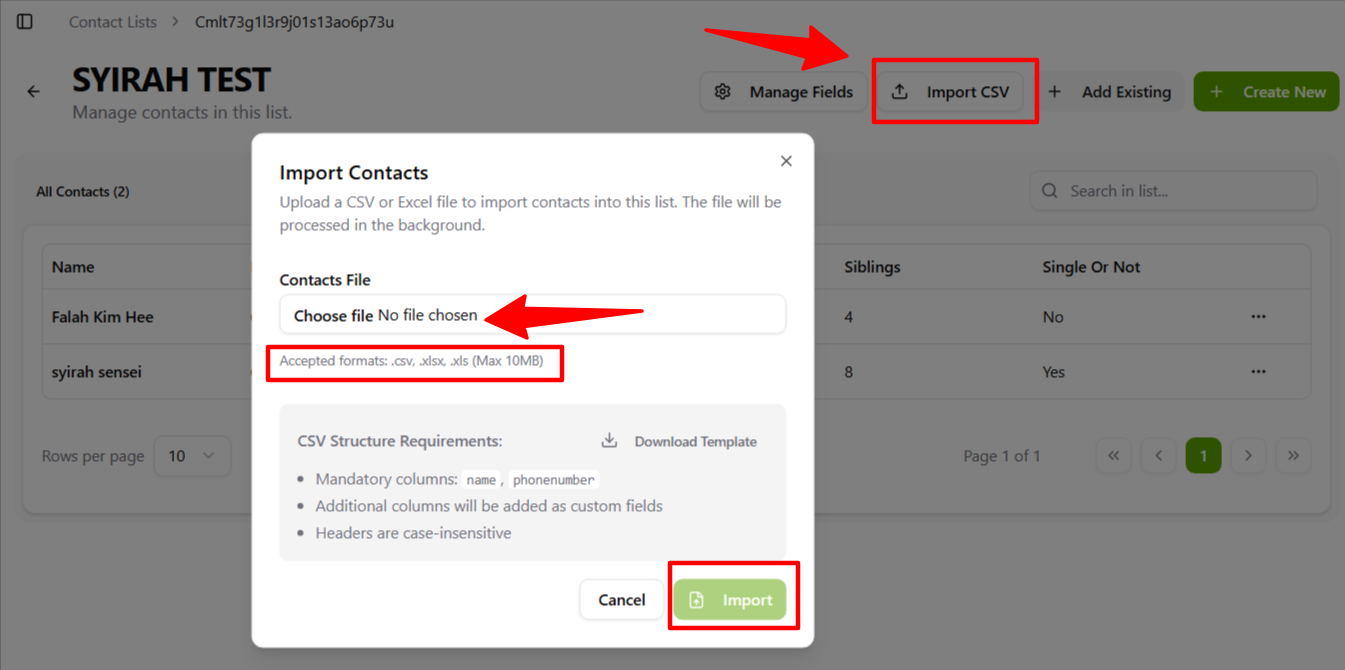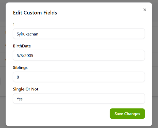 For custom fields, you can enter them without spaces, or include spaces if you prefer. Only the name and contact number need to follow the required format.