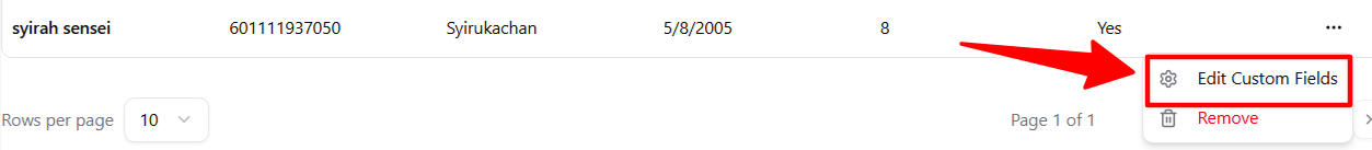 Tap the three dots for options to edit custom fields or delete contacts from the contact list.
