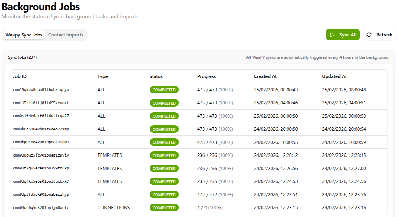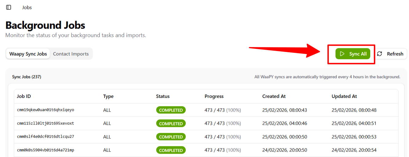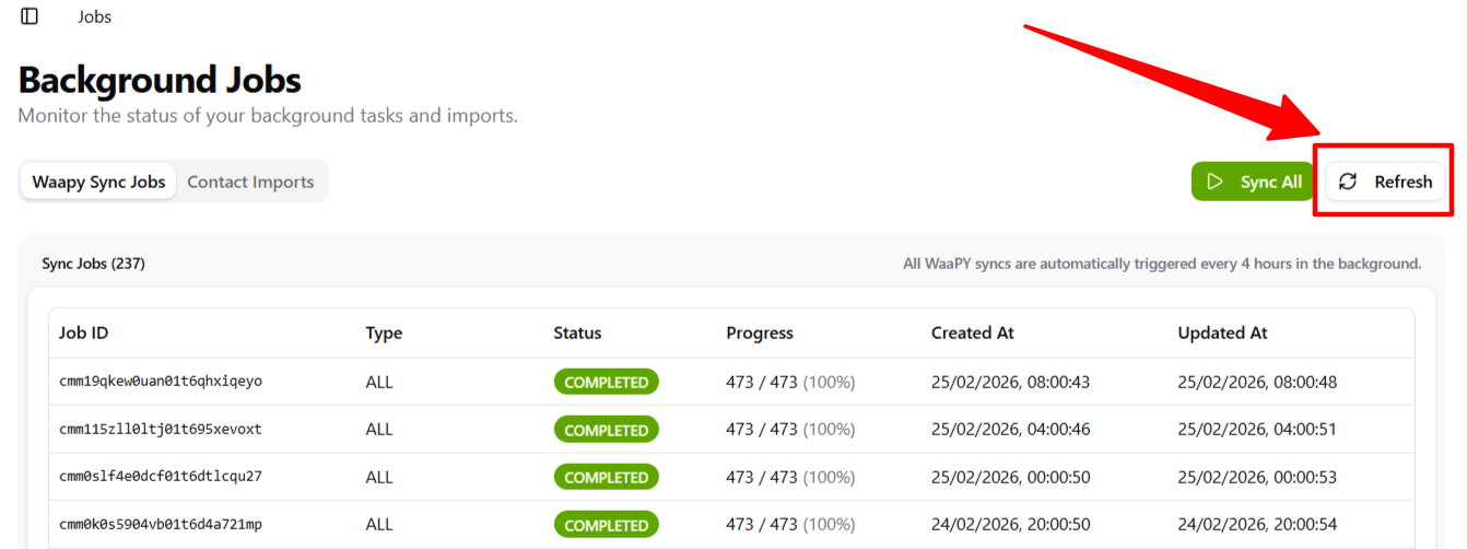 2. You can refresh the Background Job page if you’ve already pressed the Sync All button, to reload the latest updates.
