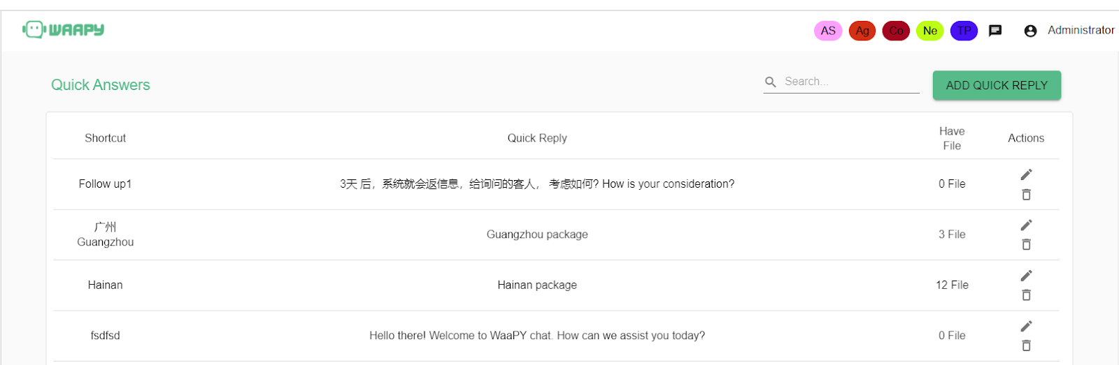 - To add new Quick Answer, click on the “ADD QUICK REPLY” button on the top right corner.