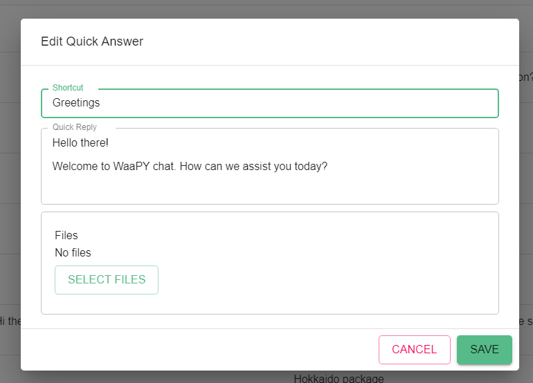 - Enter the keywords and the corresponding message and click “ADD”. You can attach the files on it too.