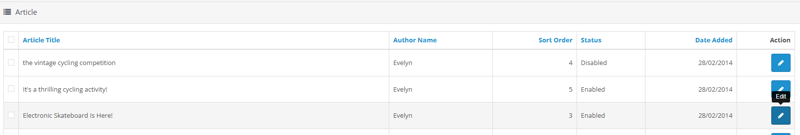 - Click the pencil icon to edit or update a specific blog post.