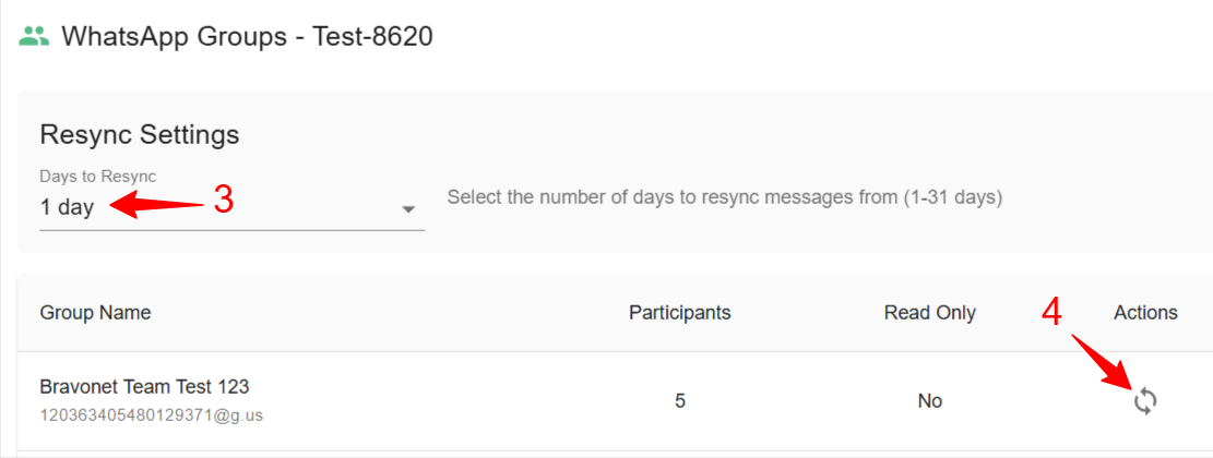 - Select a resync range of up to 31 days